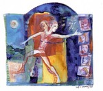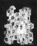 2001afscheidskaart in opdracht ontwerp; gouache en ecoline, gedrukt in een oplage van 600.